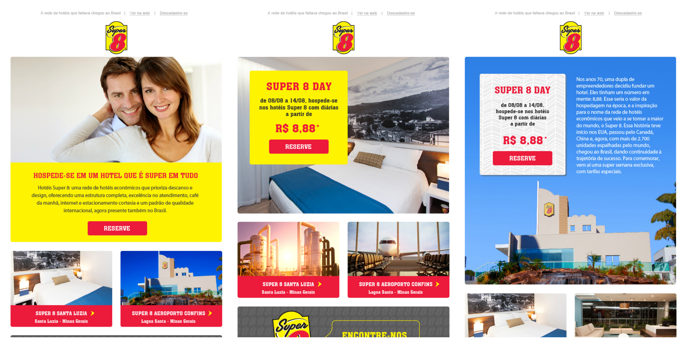 A Pmweb recebeu um desafio da rede Super 8 de Hotéis, a maior rede de hotéis econômicos do mundo, que faz parte da Wyndham Hotel Group. A rede precisava ser lançada no Brasil e começaria pelo meio online. A ideia era expor a marca trazendo seus principais aspectos como economia, conforto e localização. A estratégia de lançamento estaria associada a uma promoção audaciosa para os padrões brasileiros da hotelaria: tarifas a R$ 8,88 no final de semana e R$ 88,88 durante a semana da campanha.